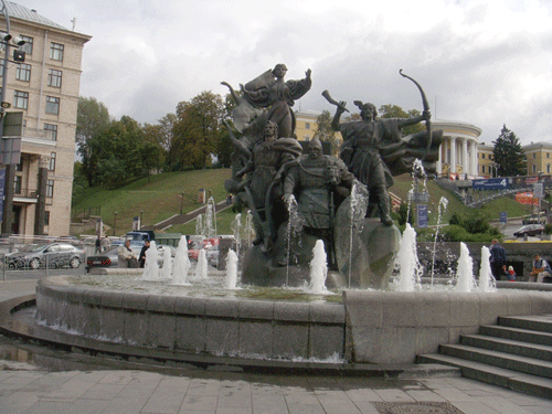 In the square is a fountain which depicts the mythological three brothers who founded Kiev, Kyi, Schek and Khoryv, along with their sister Lybid.