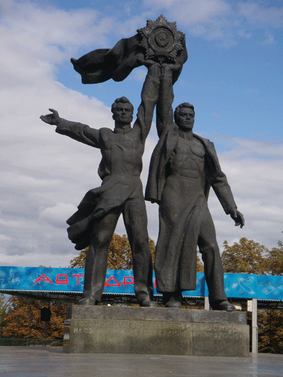 Remember the Friendship of Nations monument mentioned in my earlier post? Here’s the statue beneath it, a Ukrainian and Russian standing together. I have no idea which is which. I find it highly amusing that the one on the right has – literally – chiseled abs. I hope my friends will forgive me for saying this, but I think that nowadays, most people would find this statue a little gay.
