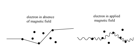 ‘Ordinary’ magnetoresistance is observed in common non-ferromagnetic metals. An applied magnetic field makes the electrons in the metal travel along helical paths, instead of straight lines. This ‘meandering’ of the electrons makes them more likely to hit an atom of the metal, and the resistance is therefore increased: