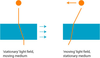 A similar argument can be made for the problem of moving light/stationary medium vs. moving medium/stationary light. The two cases seem at first glance to be physically identical, but in fact there is a subtle but important difference: the direction of motion and energy flow of the light field.