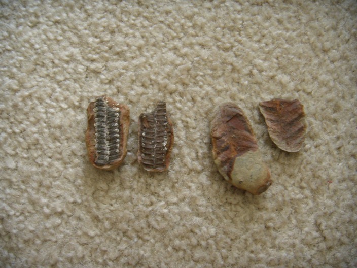 Here’s some that I actually had to work for!  Some twenty years ago, I went with my Dad on a Field Museum-sponsored field trip to the Mazon Creek fossil beds outside of Chicago.  We wandered the fields all day, getting ripped up by sticky bushes and hunting for rocks to split open in search of pretty fossils.  The two pictured above are the two best that I found: fossilized leaves that are perhaps 30 million years old.