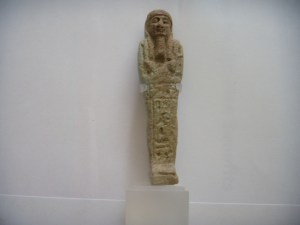 This is inarguably the pride of my unofficial collection.  Ushabtis are figurines which were buried  in tombs and intended to work essentially as servants for the deceased.  My figurine is approximately six inches tall, and was procured for me by my father on one of his business trips to Africa, from an authorized dealer.  Ushabtis are common enough that many have made their ways into the hands of private collectors; there is even a website dedicated to ushabtis in private collections.