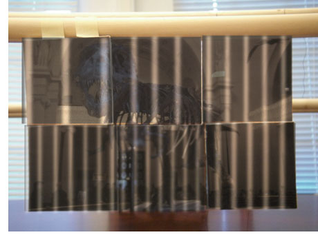 Structured light is a technique which is also quite interesting. As we’ve talked about before on this blog, in particular in the context of making anamorphic images, in general one cannot get depth information about an object using measurements from a single point of view. I demonstrated this with my anamorphic T-Rex. Seen from a single, special point of view, the image looks almost normal: