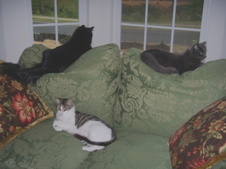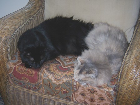 I have a few examples of kitty camaraderie. Here’s Simon and Sasha sharing a seat in the sunroom together: