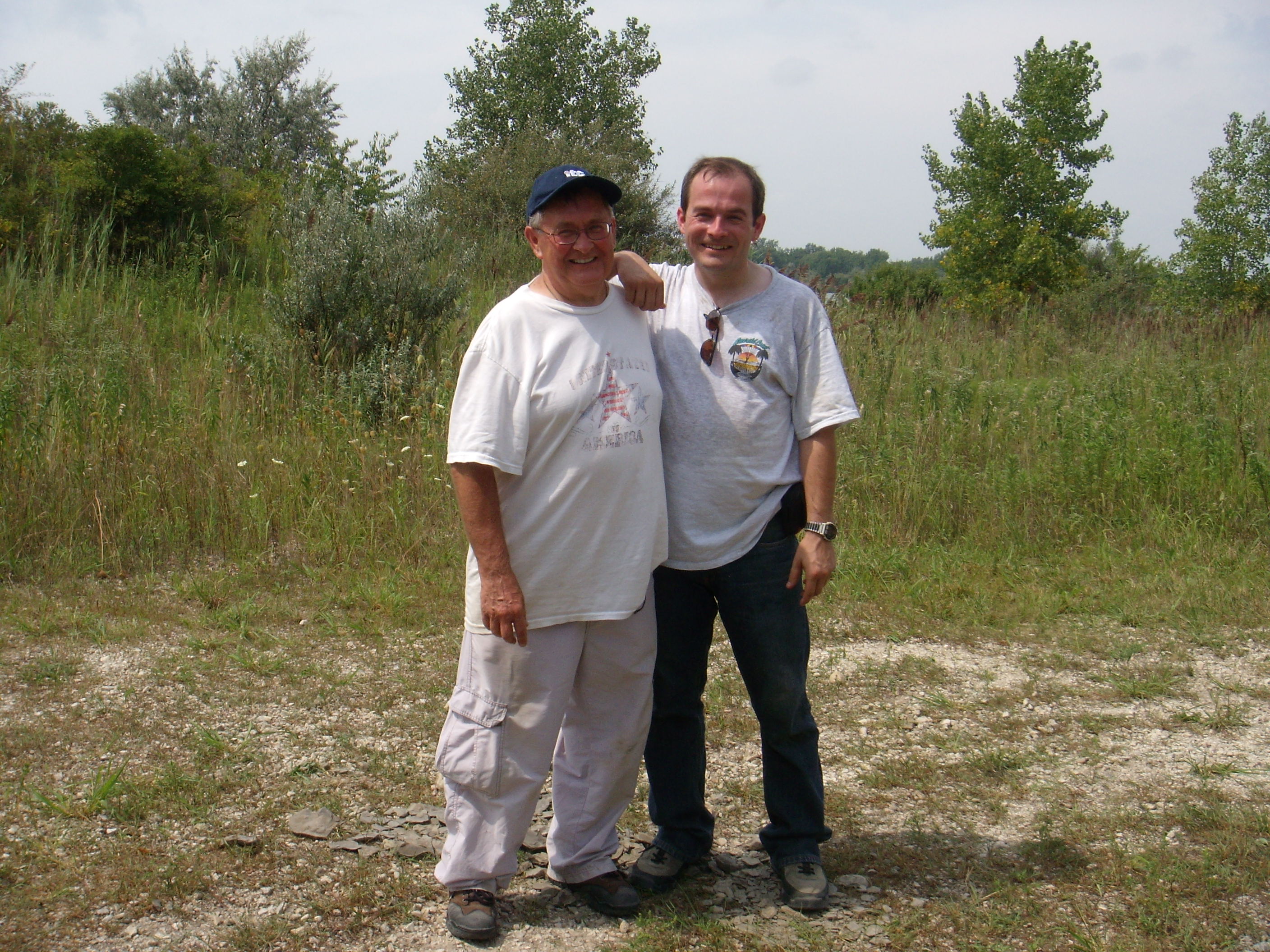 Although we didn’t come home with spectacular specimens, we had a fun time.  Below is a pic of Dad and I after 3 hours of trudging through undergrowth, clinging to cliff sides and digging in 90-degree heat: