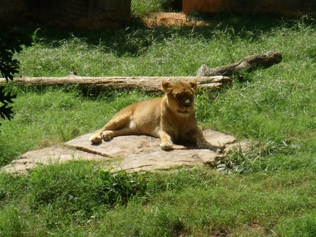 A lioness sunning herself on a nice warm rock.
