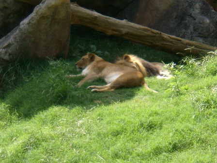 The same lioness taking a nap with her hubby!