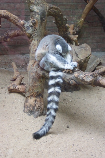 While I was doing postdoctoral work in Amsterdam, I spent a lot of time hanging out at Amsterdam’s Artis Zoo, which actually has a pretty large collection of lemurs. The exhibits are small, due to the compact nature of the city. This is relatively bad for the lemurs, but good for a fan like myself. While there, I got a lot of pics of lemurs, and thought I’d share a few. First, a napping ringtail: