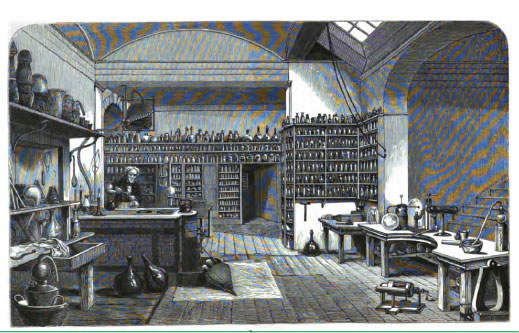 Faraday’s laboratory at the Royal Institution, from The Life and Letters of Faraday, vol. 2.