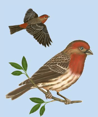 My new camera came through for me big time! We’ve been pretty convinced that our avian houseguests (wreathguests?) are house finches, but I hadn’t been able to get a picture to confirm it until this afternoon. The papa bird was hanging out on the tree in front of our house when I went outside, and I snapped the following picture: