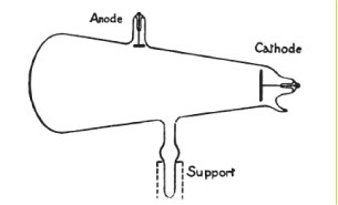 Type of tube with which Röntgen discovered X-rays.  The cathode rays impinged upon the broad end of the tube.  From G.W.C. Kaye, X-rays (1918, Longmans, Green and Co., London, 3rd ed.).