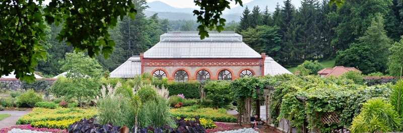 The gardens and grounds surrounding the house are equally impressive, and were designed by Frederick Law Olmsted, who also designed New York City’s Central Park.  Here is a picture of part of the gardens and the conservatory:
