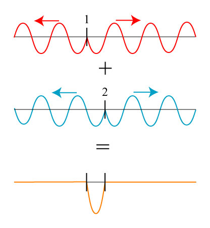 Even with this in mind, it is easy to come up with circumstances that can really challenge one’s understanding of interference. For instance, let us return to our waves on a string, and consider interference between waves generated by two local excitations: