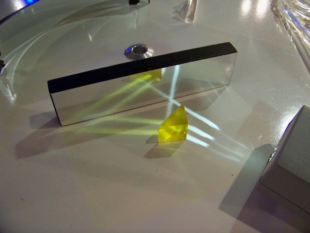 A second station gives kids the opportunity to study geometrical optics more generally, with a series of mirrors, prisms, and a ray box: