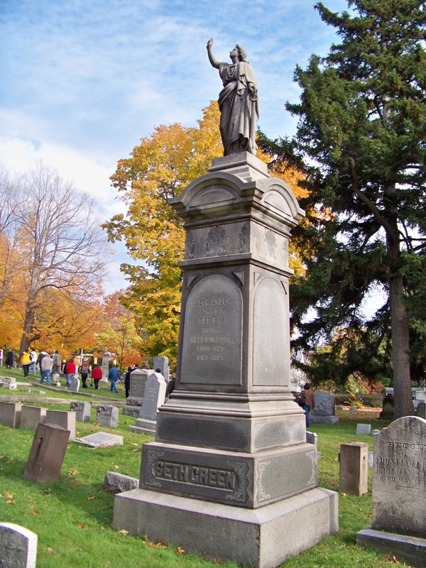 I chuckled at first, because Seth Green is the actor who, among other roles, played Dr. Evil’s son in the “Austin Powers” films!  It turns out, though, that I had inadvertently photographed the memorial of another rather important person!  Seth Green (1817-1888) was a fish farming pioneer (which is sometimes referred to by the cool name of pisciculture), and established the first fish hatchery in the United States in 1864 in Caledonia, New York.