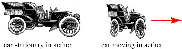 This is the idea behind FitzGerald’s length contraction. Since the aether was (in 1800s physics) the medium that communicated electromagnetic waves, and atoms and molecules are held together by electricity, it was reasonable to assume that moving through the aether might apply an electric pressure of sorts, causing an object to shrink along the direction it is moving. A full-size car, driving fast enough through the aether, would shrink to a compact!