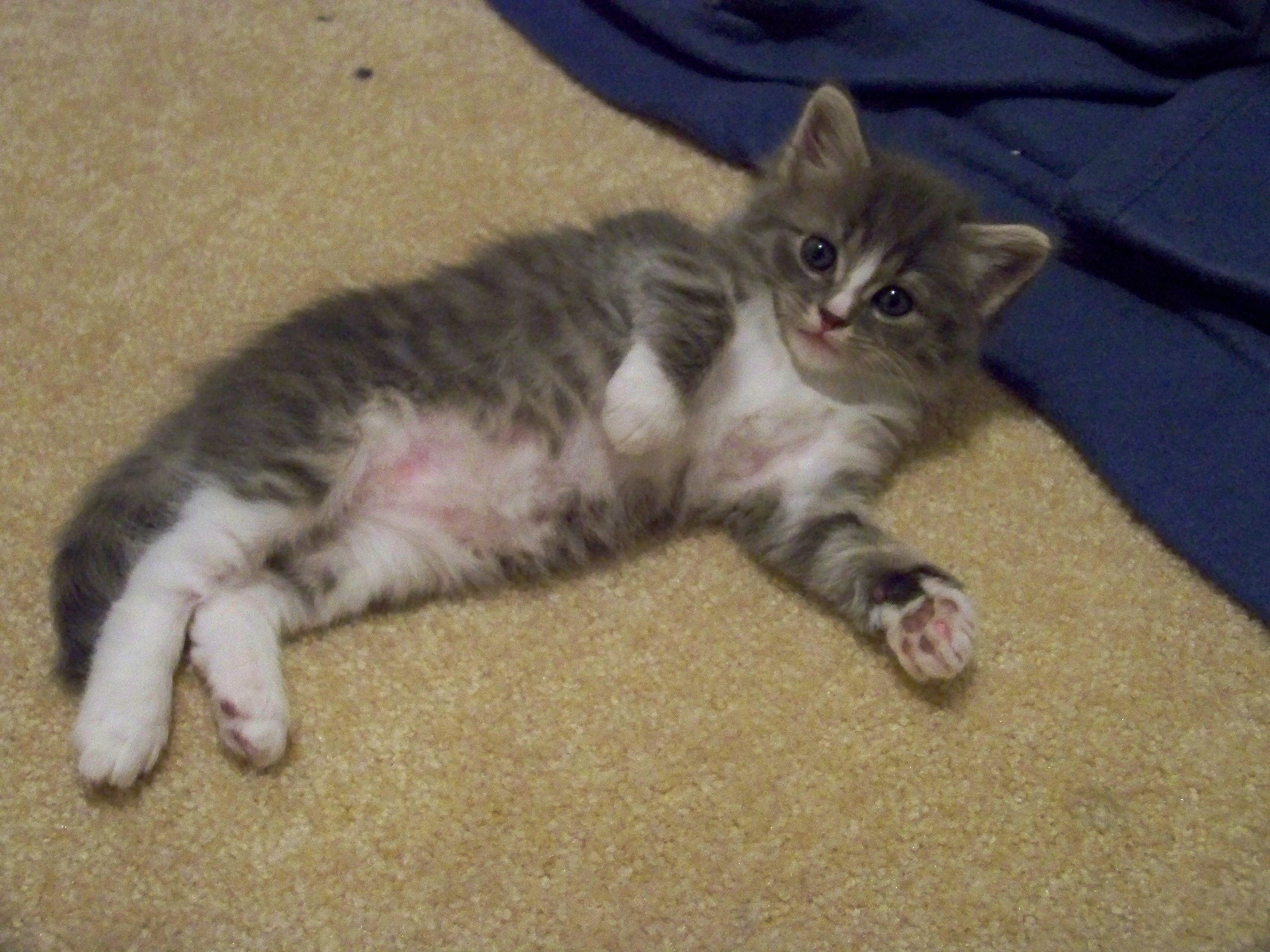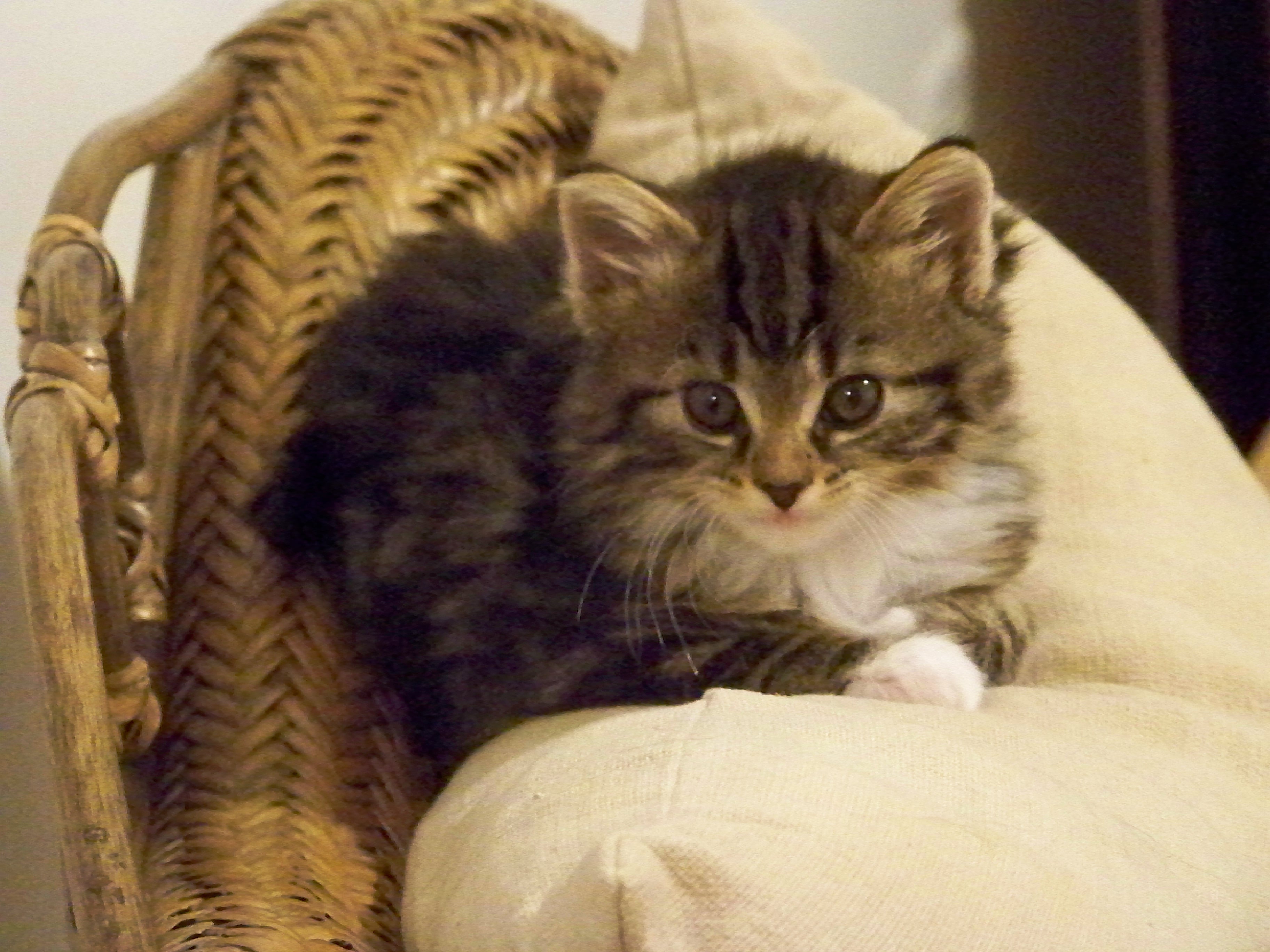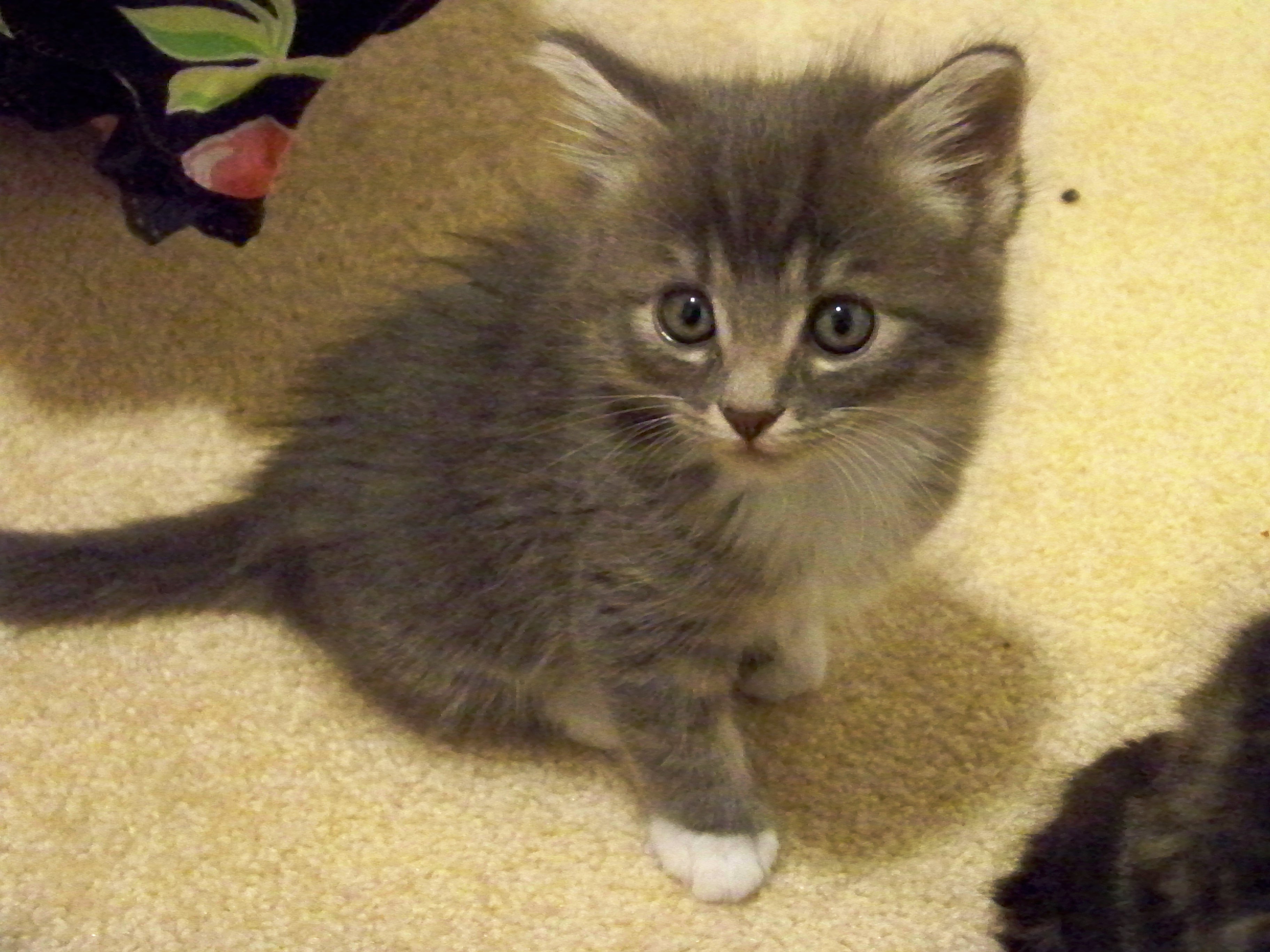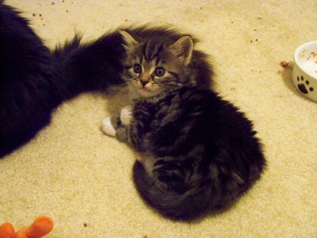 Alvin is already looking like he’ll be a pretty big boy when he grows up. He’s also one of the noisiest of the kittens, and used to whine when we picked him up!