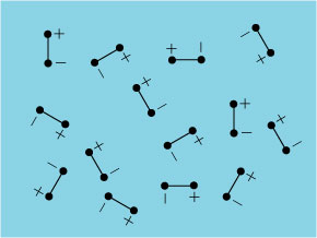 It is natural to ask at this point: if water is a huge collection of electric dipoles, why isn’t water visibly electric under normal circumstances?  The answer is that ordinarily the dipoles are all in constant microscopic motion and any small volume contains a large number of randomly-oriented dipoles: