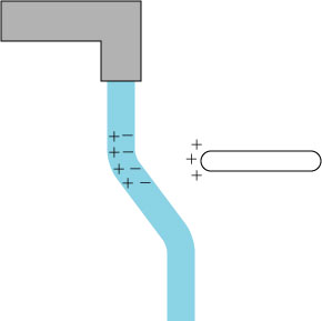 • I’m actually not sure that one can do a water repulsion! If the water had an overall net charge to it, we could repel by bringing the opposite charge near it. However, the water is overall neutrally charged: if we bring a + charge near the stream, the – charges in the water get attracted, and vice versa.