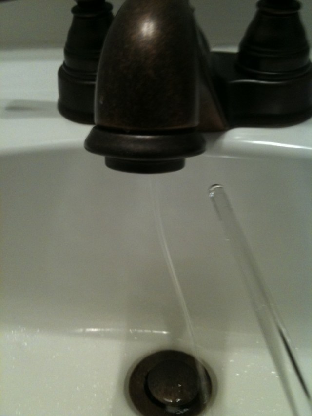 Equally odd, but even less known, is the curious ability to bend a stream of water with static electricity.  I did this experiment at home a couple of weeks ago, and a snapshot of the result is below: