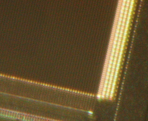 Edge of a CCD pixel array. Each pixel is approximately 0.01 mm across. (Via Warren Wilson College.)