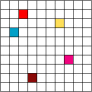 Suppose the image you want to reconstruct consists of 5 randomly colored and located pixels in a array, such as shown below: