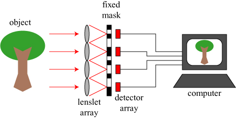 The serial measurement scheme described above works, but would be very slow to record an image, since the mask measurements need to be made one at a time. A faster technique involves using pixels, each of which has its own dedicated mask. Then each mask measurement can be made at the same time, very much like an ordinary camera.
