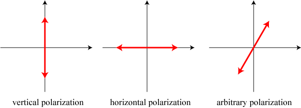 Looking at the wave head-on, the electric field can be oriented in any direction with respect to the horizontal or vertical axes; that orientation is what we usually refer to as “polarization”: