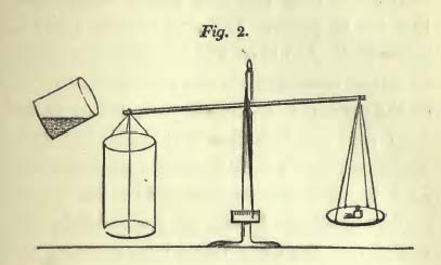 The lectures are all interconnected in a very clever way. Gravity is discussed in detail first, and it is used as a springboard, of sorts, to compare and contrast the behavior of the other forces of nature. Gravity’s fundamental nature is the simple experimental fact that all objects with mass “gravitate”, whether in solid, liquid, or gas form. Faraday illustrates this beautifully by generating a gas of (heavier than air) carbonic acid; this invisible gas, which can be held in a beaker, can be poured into another beaker on a balance and tip the scales, as illustrated in the printed version of Faraday’s lecture: