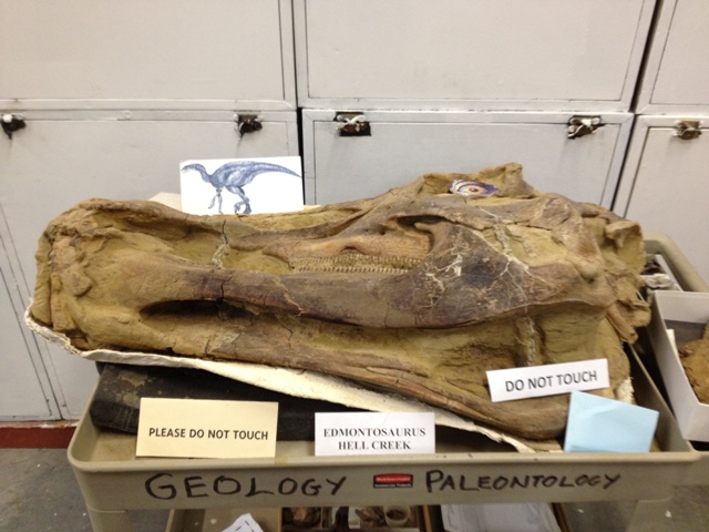 We were treated to one more interesting specimen: an excellently preserved Edmontosaurus from Hell Creek: