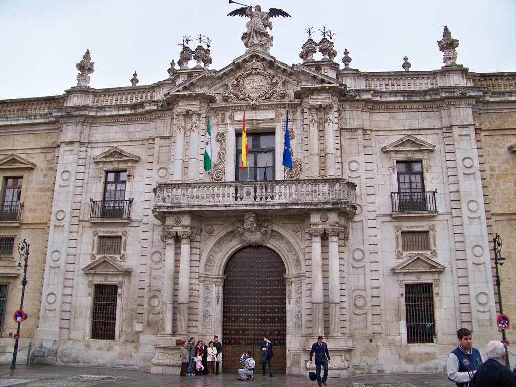 Once we had eaten lunch (and waited for a sudden rainstorm to pass us by), we continued on our journey to the Plaza. Along the way we passed the main building of the venerable Universidad de Sevilla (University of Seville).
