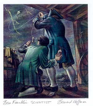 Painting of Benjamin Franklin flying a kite, by Bernard Hoffman. (Via ushistory.org)