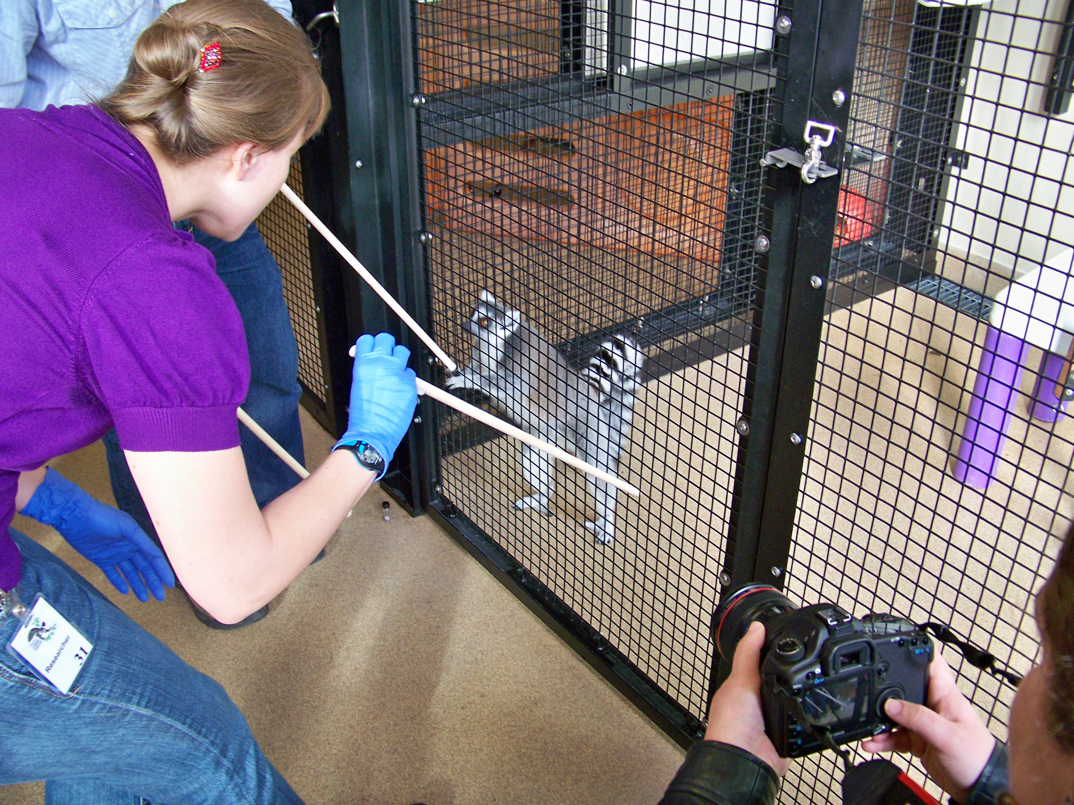 Ring-tailed lemurs are highly social, and typically live in groups of as many as 30 individuals. They mark their territory using scent glands in their forearms, and the Duke Lemur Center is doing research to understand how well they can distinguish between scents of close relatives and unrelated ring-tails. We were treated to a demonstration of one of the tests, in which different scent-marked sticks were presented to a lemur to judge the reaction.