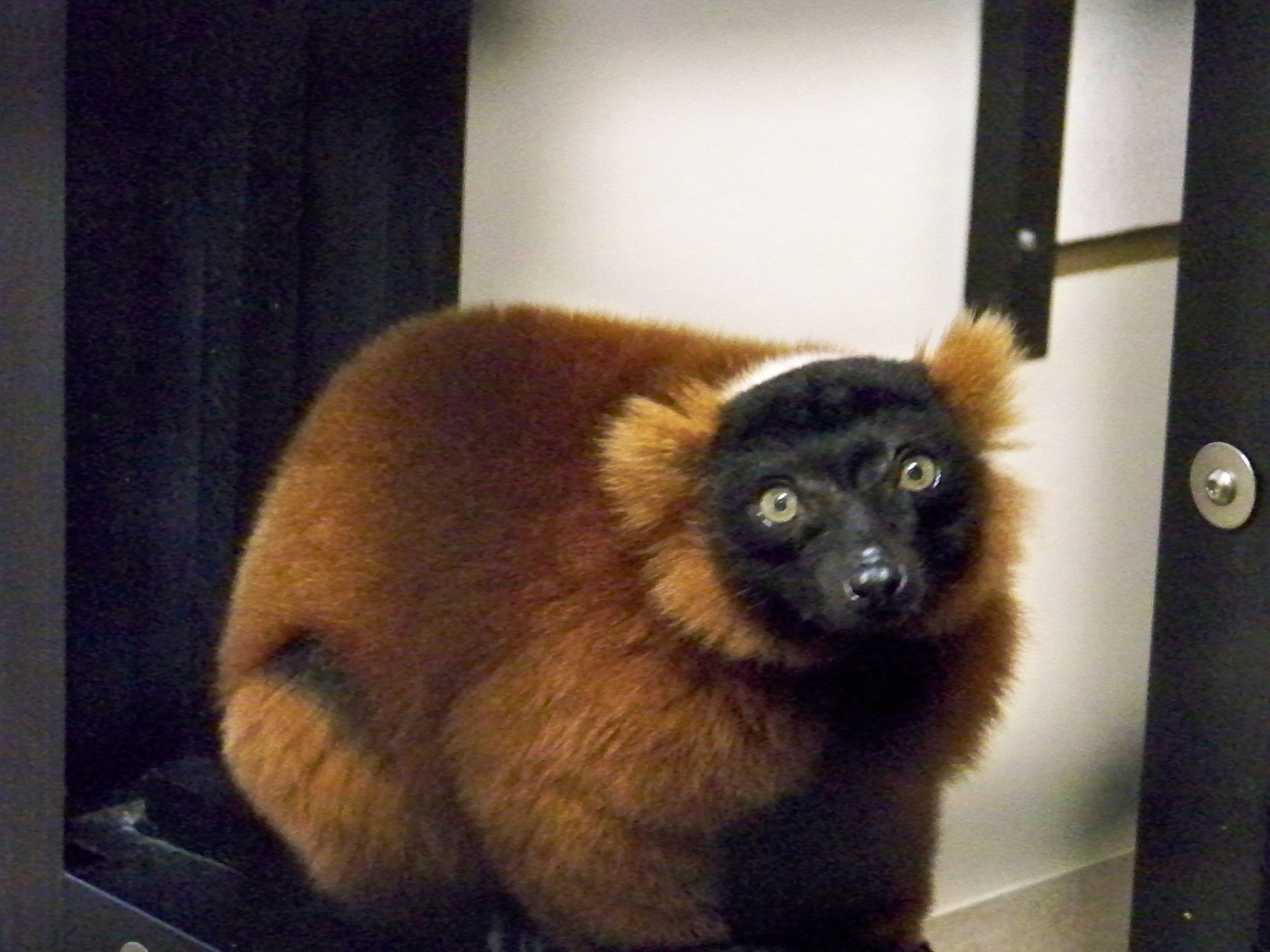 One thing that we learned about the red ruffed lemur: it is a noisy species! They vocalize a lot, and in the short time that we were in the building with them they probably raised four alarm calls. Our guide noted that, although the other lemurs react to these calls, the relax much quicker when a red ruffed lemur raises the alarm than when any other species does. The red ruffed lemur is really the lemur who cried wolf!