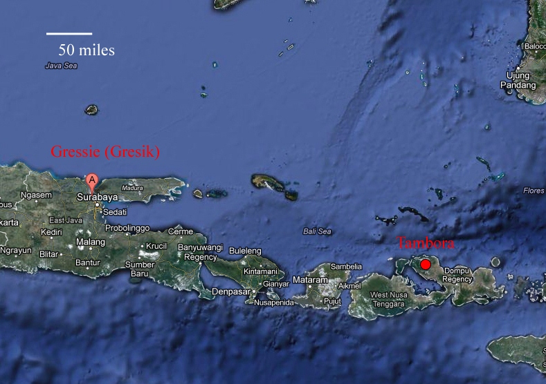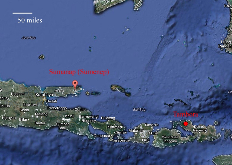 The “rush of water” from the Bay was certainly one of several relatively small tsunamis that was created by the explosion of Tambora.