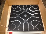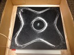 Update: I thought I’d mention the specific tools I used for my Chladni setup, as following the “official” requirements through an online science store can be expensive! I ordered a vibration generator and Chladni plate from DrMass.com for about $250. Instead of purchasing a very expensive signal generator to drive the system, I purchased a stereo receiver from Radio Shack for $100. To generate the frequencies, I downloaded a free tone generator app to my iPhone! All told, I spent quite a bit of money to get my system running, though as I noted above it is possible to build your own driver for much cheaper.