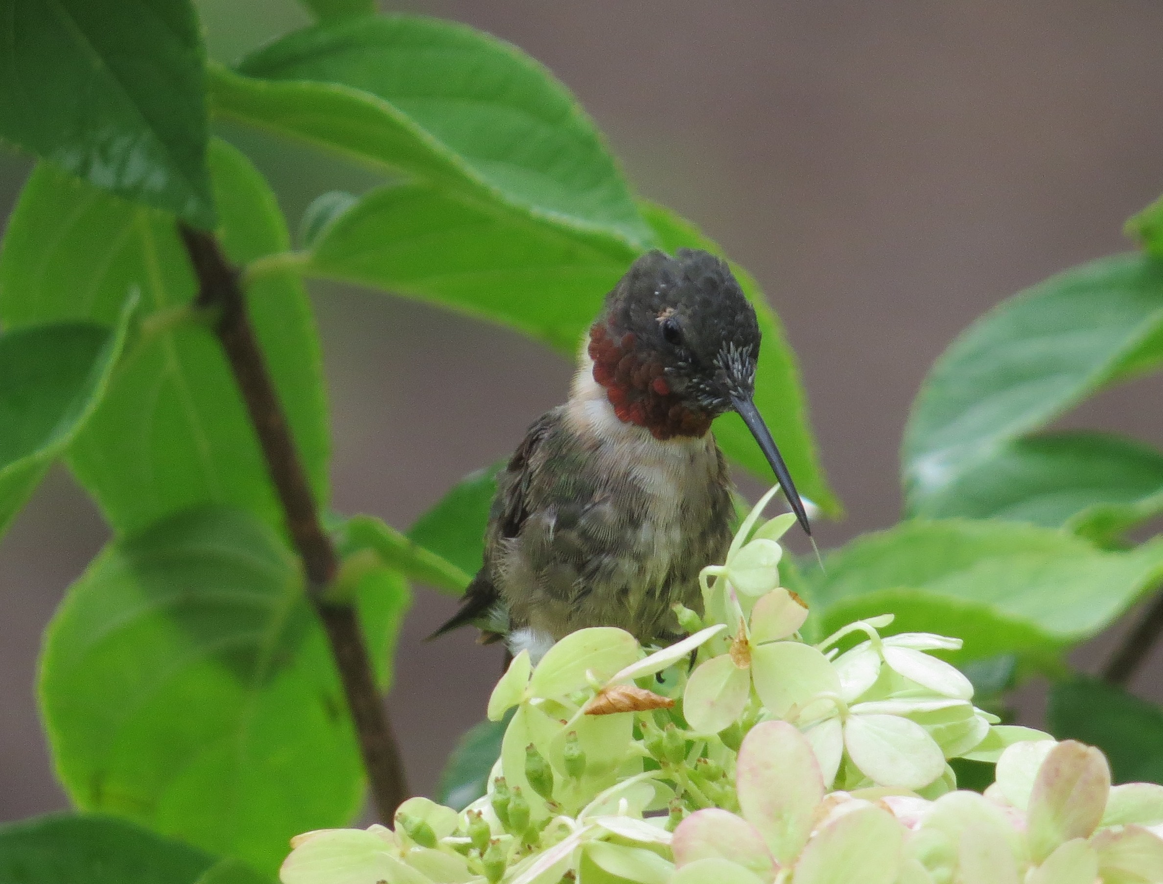 You can’t see the ruby throat in this picture, but I’ve noticed that they have the ability to display or hide the colors at will.  Different pictures of the same fellow will show dramatically different levels of color.