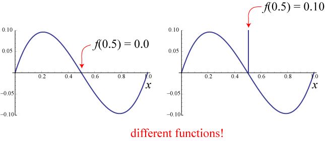 With this in mind, let us consider the set of all functions f(x) on the numbers . We consider two functions to be different if they disagree at even a single point on the range of x, as illustrated below.