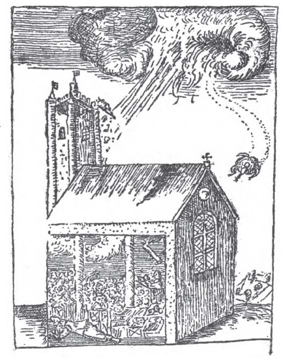 Surprisingly little is said in the first and second tracts of the “great ball of fire,” which is featured in all illustrations of the Widecombe storm and seems to have been taken as a particular divine sign.  A little more detail is provided in the “third” Widecombe tract, however.