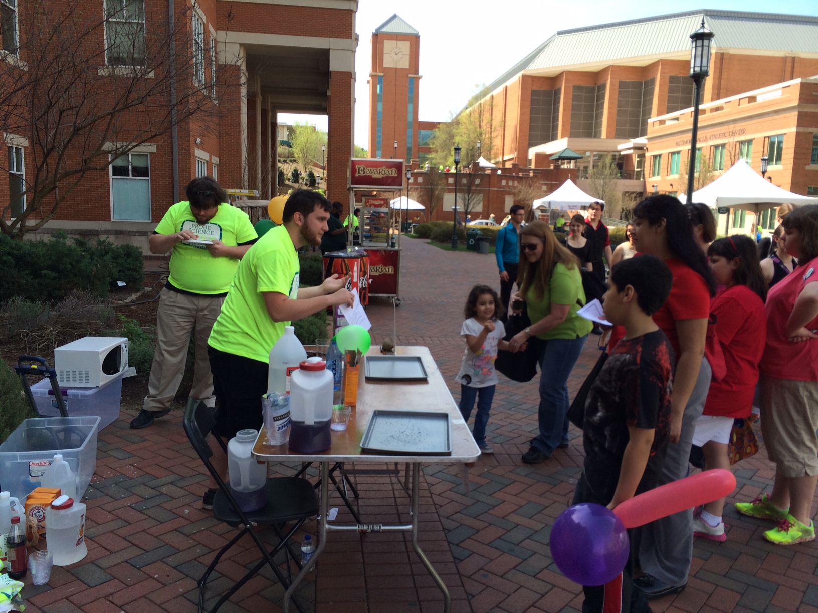I can personally attest to how fun the experiments are! This Spring, based on Liz’s suggestions, I put together a “Kitchen Pantry” demonstration table at the UNC Charlotte Science and Technology Expo. The table was a hit, and drew consistent crowds for the duration of the event.