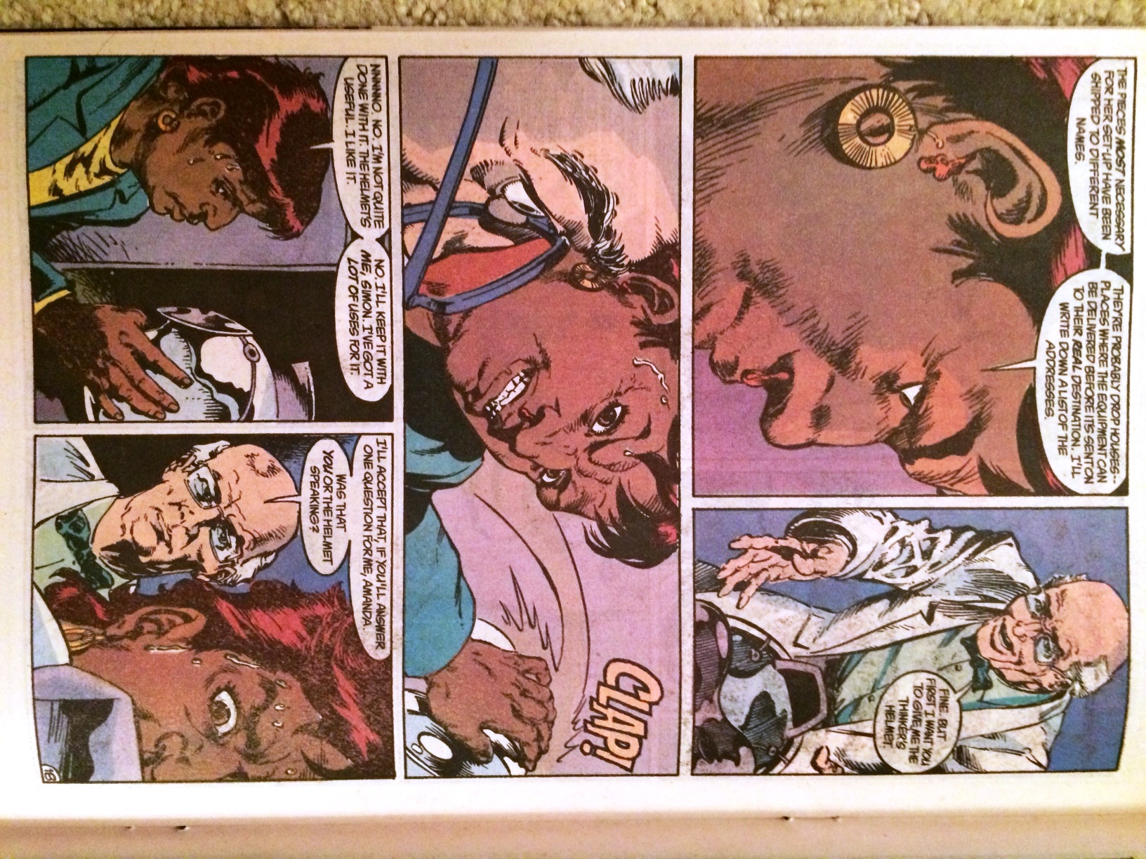 This was not a particularly good idea, as the Original Thinker’s helmet provides an instant massive boost to intelligence that turns out to also be massively addictive, in no small part due to the seduction of the artificial intelligence the helmet holds. The Original Thinker became a villain, in fact, because the helmet essentially drove him insane. But Waller puts it on, and is able to track down the “electronic fingerprint” of Oracle and the New Thinker’s encounter, giving her a lead on tracking them down. And then…