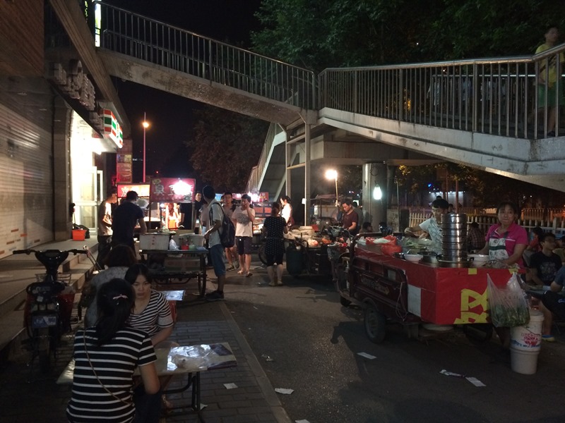 Some of the street vendors near the old NPU campus. Note the pedestrian bridge; such bridges are often the only way to get safely across the road.