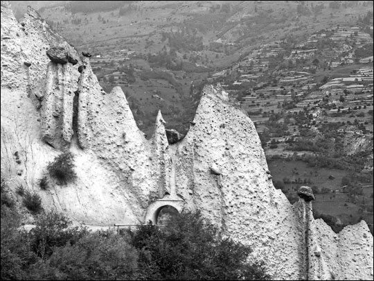 Alpine erratics perched on the top of a ridge known as a moraine. Via NASA’s Earth Observatory site.