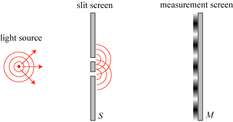 We noted in part 2 of this series that even a single electron evolves as a wave through the double slit experiment — though it hits the screen at a definite point, the probability of it arriving at that point is dictated by the wave properties. When enough electrons accumulate at the screen M, the interference pattern becomes visible.