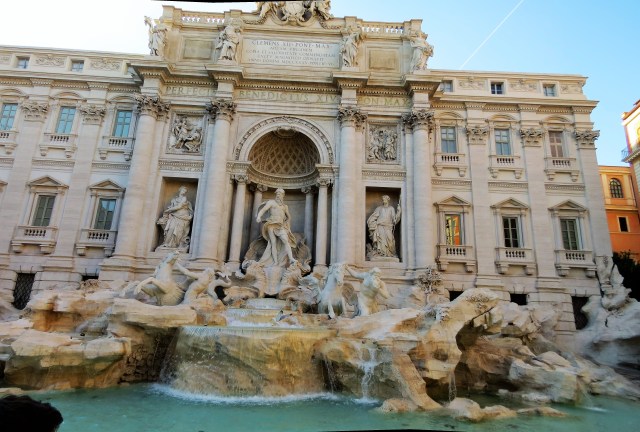 It is truly a magnificent sight, and was quite crowded with spectators when we arrived. With a little patience, however, we were able to get clear views of the fountain for photographs. The Trevi Fountain is featured in a famous scene in the 1960 Italian film La Dolce Vita. If you’ve never seen the scene, here it is!