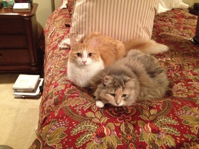 All three of them got along splendidly with our other kitties, though Fluff in particular seemed to thrive on cuddling with the others. And the other kitties were happy to reciprocate.