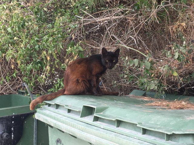 Lots of the kitties were hanging out around and in dumpsters. Apparently the feral cats of Spetses have adapted to a scavenger lifestyle, and one that is tolerated, if not endorsed, by the locals.