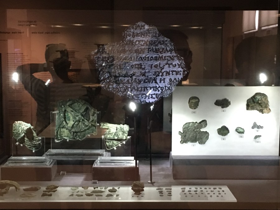 Display of the remnants of the Antikythera Mechanism.