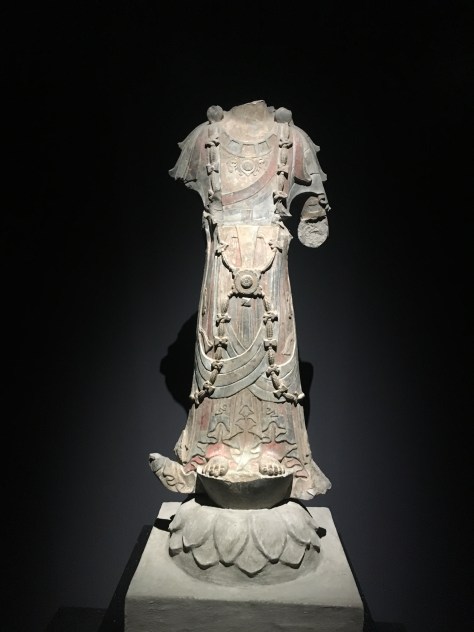 Buddhist statues of the area have their own distinct style, called the “Shandong style.” They are characterized by figures in light flowing robes and usually possessing a downward-facing dragon above their heads biting a lotus.