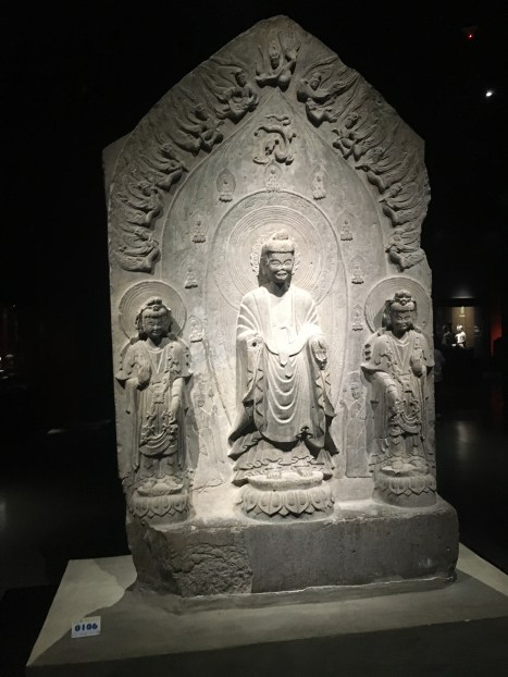 Gallery 1 is The Exhibition of Buddhist Art. The earliest extant Buddhist temple in Jinan was constructed in 351 CE, and Buddhism flourished in the region after that, resulting in a lot of stone Buddhist sculptures. These sculptures attracted little notice until the 1980s, when many statues were unearthed. In 1996, a cache of sculptures were discovered in Longxing Temple in Qingzhou, leading to national interest. The museum highlights some of the loveliest specimens uncovered in Shandong.